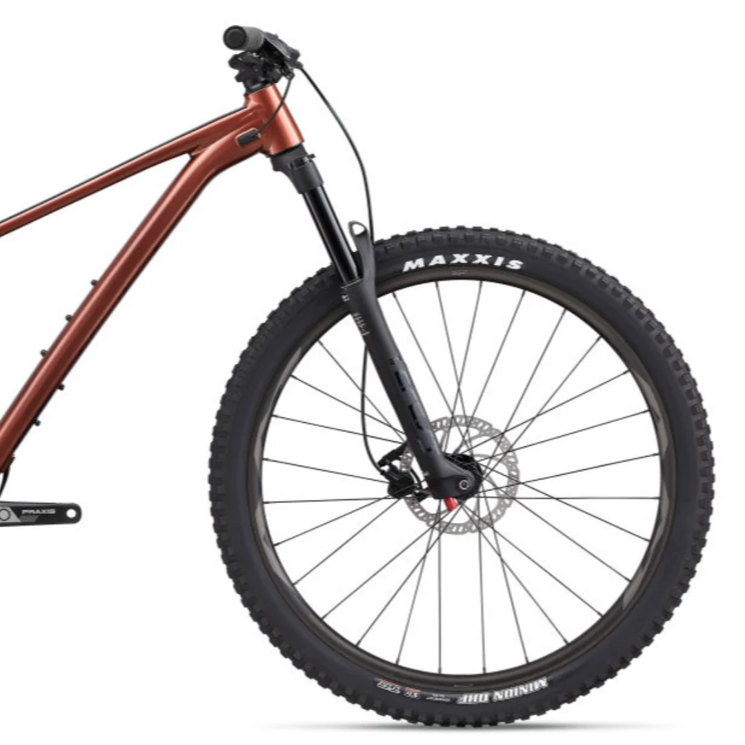 Giant Crest 34 suspension fork with 130mm of travel absorbs roots, rocks and ruts. Grippy, high-volume tires boost traction on rugged terrain. And a dropper seatpost with handlebar remote lets you adjust saddle height on the fly for confident positioning on changing terrain.